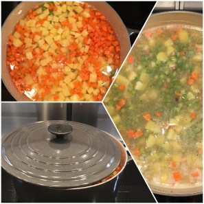 Let the soup simmer for approx. 1 hour, no need to stir, but just double-check once in a while that the pot has enough water, otherwise your soup will burn.