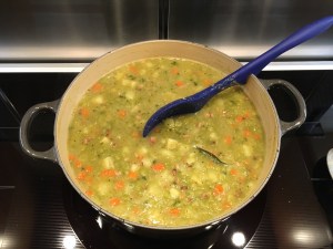 After an hour, add vinegar, bay leaf and parsley. Stir approx. every 5 minutes to ensure the soup doesn’t stick to the pot for the next 30 minutes or until peas are tender. If needed, you can add some additional water, but remember, we want to have a thick hearty not watery soup. If you added too much water (it happens, don’t worry), just cook it a bit longer until the excess water is gone.